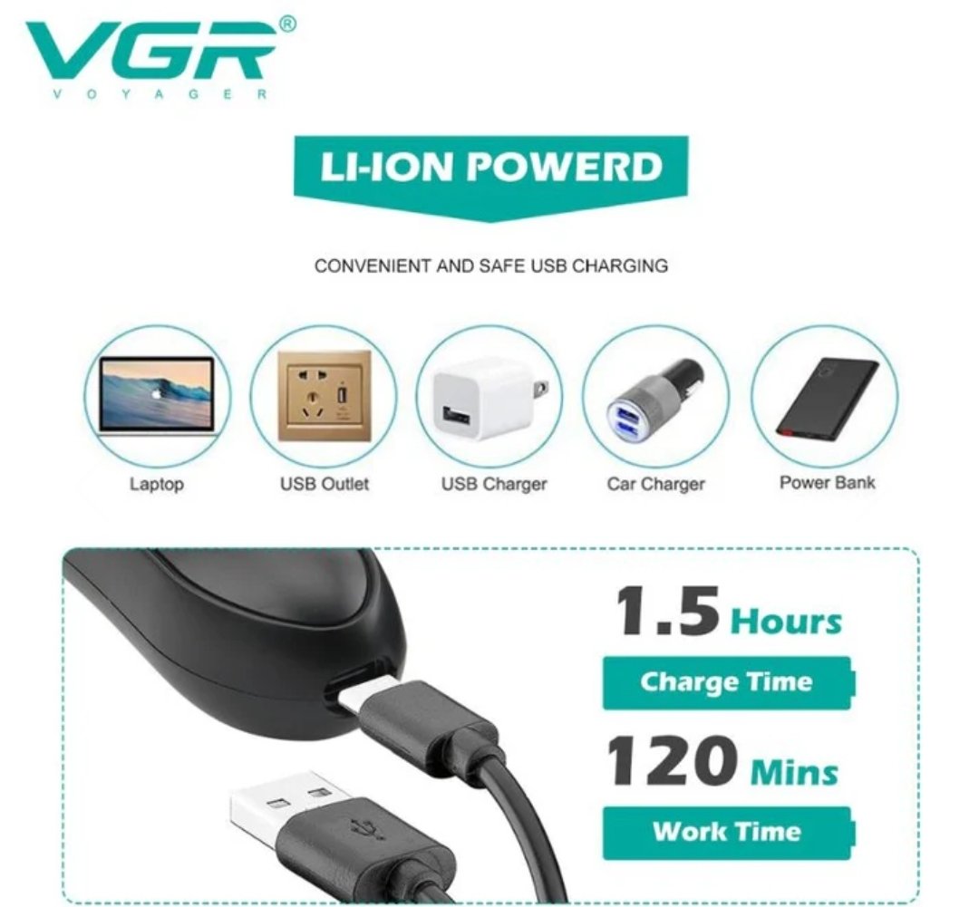 تجمع ماكينة V-934 VGR بين الكفاءة العالية والتصميم العملى لتوفر لك تجربة عناية مثالية. تأتى برأسين مخصصين لتشذيب شعر الأنف والجسم بدقة وأمان، حيث تعمل شفرات الأنف المصنوعة من الفولاذ المقاوم للصدأ عل إزالة الشعر بلطف دون تهيج، بينما تضمن شفرات السيراميك فى رأس الجسم أداء ناعقا وفقالا. تتميز بخفة وزنها وسهولة التحكم فيها، وتعمل لاسلكيا مع بطارية تدوم حتى 120 دقيقة. مثالية للاستخدام المنزلي أو أثناء السفر غهي خيارك الأمثل للحفاظ على مظهر أنيق ومنتظم في كل